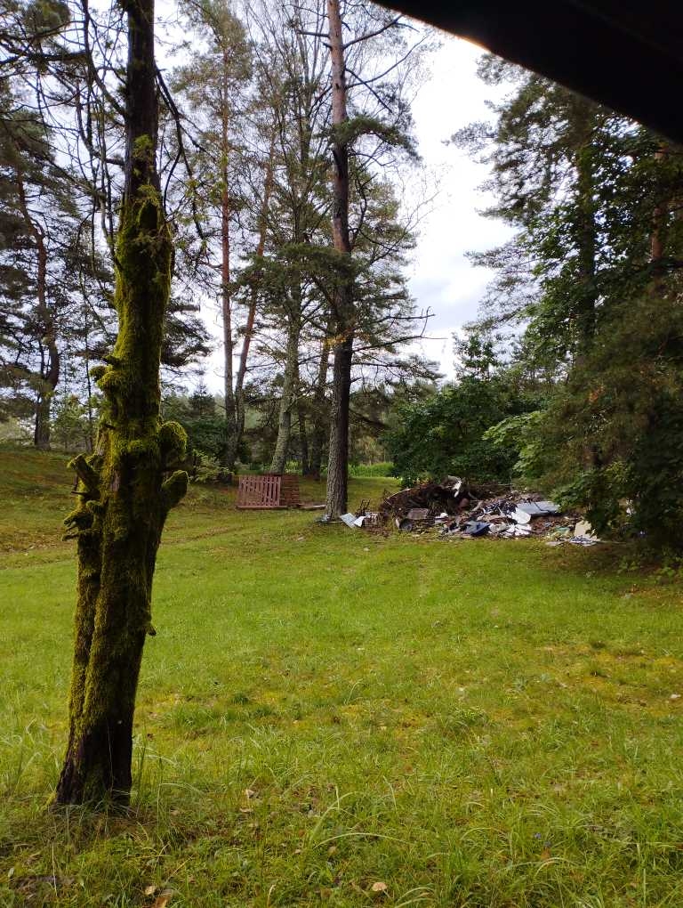 izgāztuve mežā, arī pretējā ceļa pusē liela ugunskura vieta, kur dedzina atkritumus