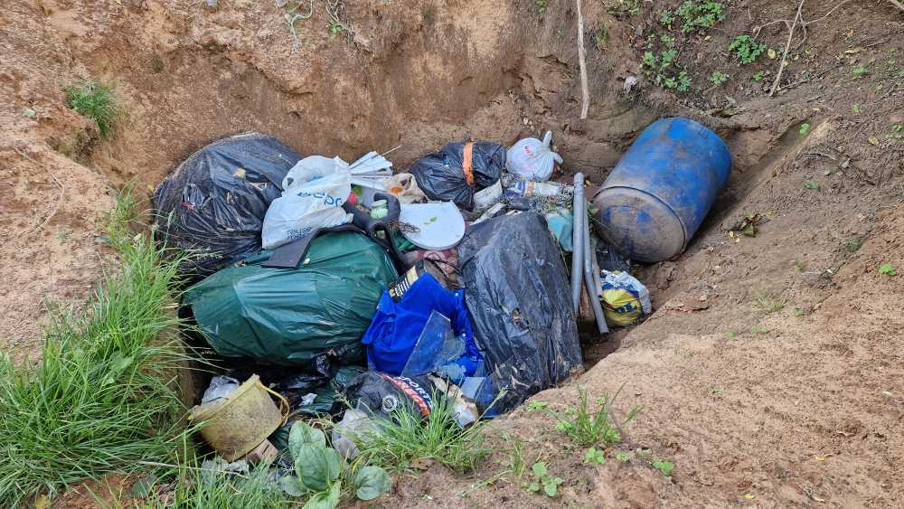 Sadzīves atkritumi un būvgruži. Izrakta bedre.