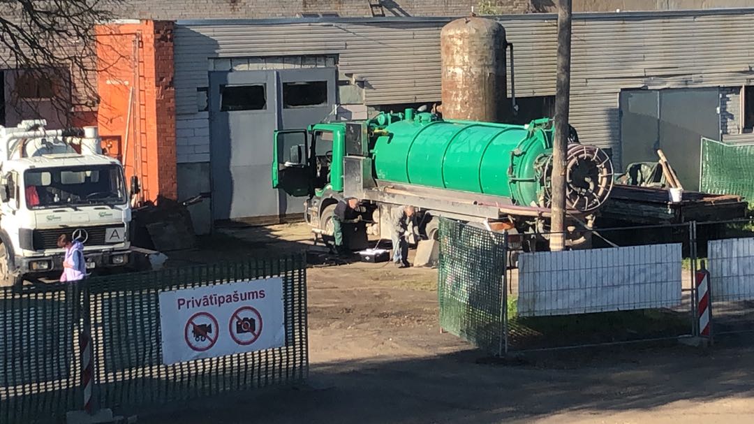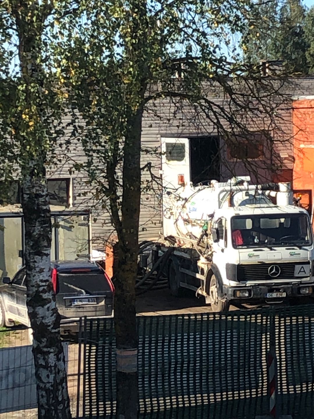 Asenizatoru tehnikas remonts mūsu dzīvojamās mājas tieša tuvumā.