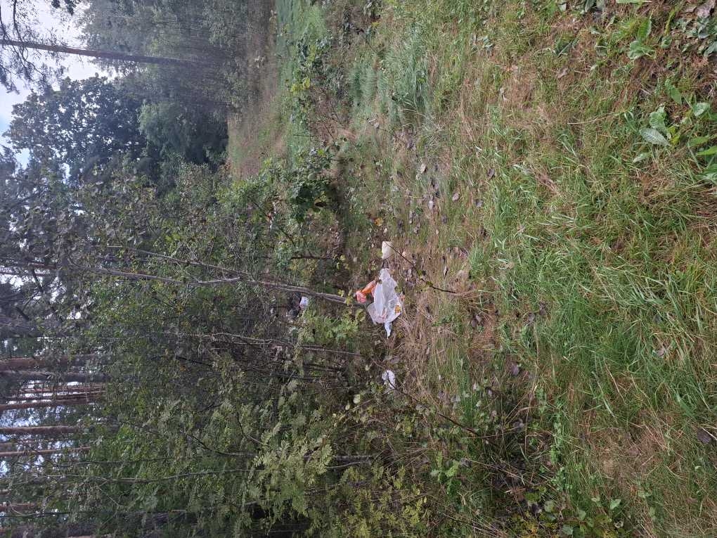 izmētāti sadzīves atkritumi, saplēsta stikli.