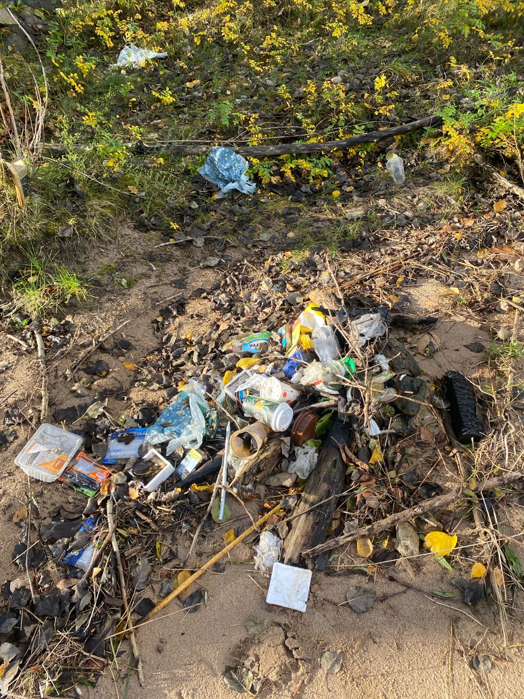 Atkritumi. Zaķu salā vispār visi pilni krūmi un vietās kur cilvēki tiek pie ūdens visur ir čupas ar atkritumiem.