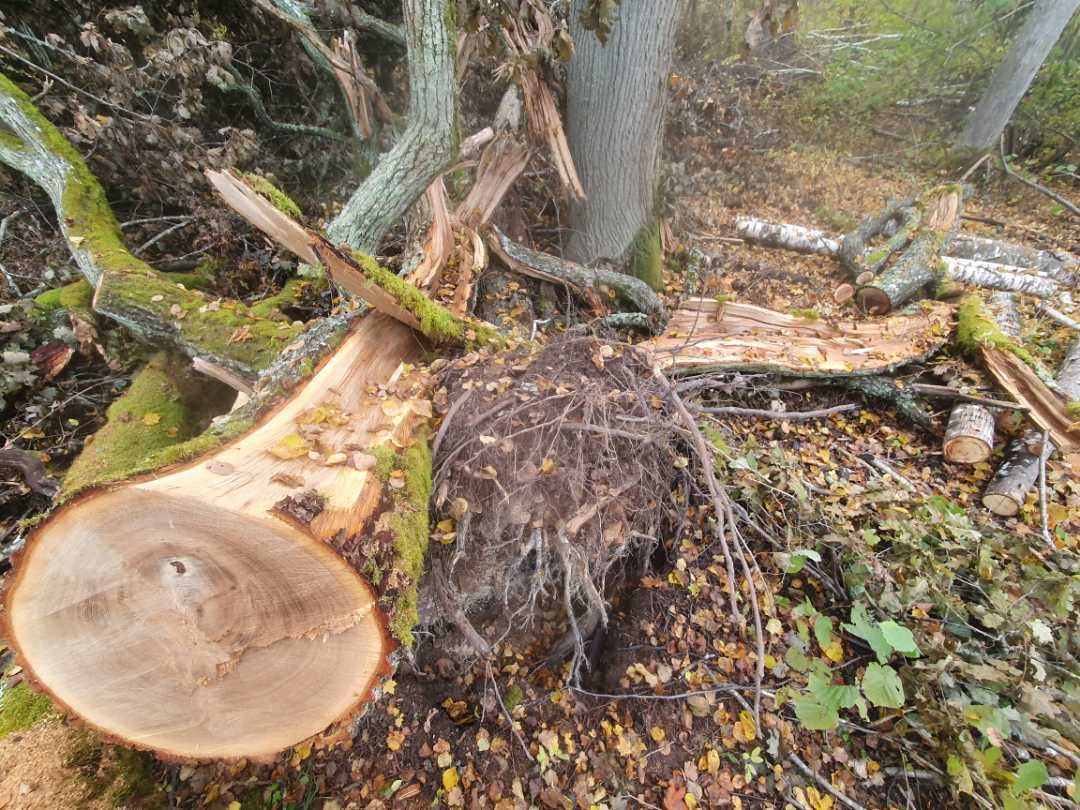 zāģēts ~ 170 g.v. ozols (ar vējā cietušu zaru ~