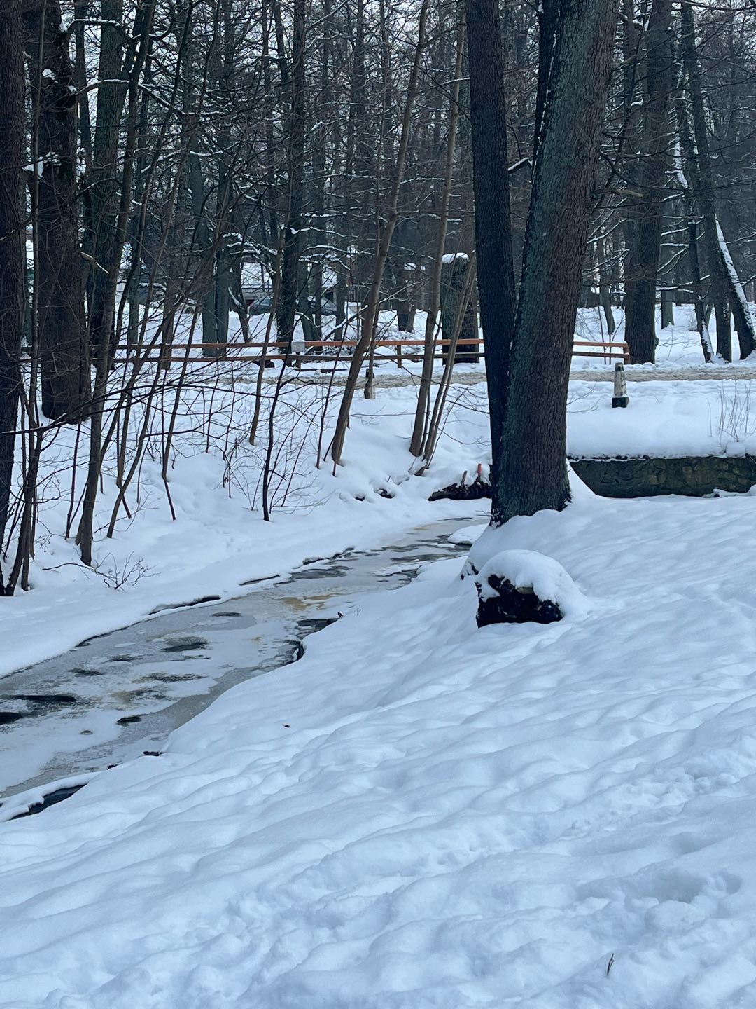 Mārupīte Bieriņos, Rīgā, vēl vakar vai aizvakar bija aizsalusi. Šodien vaļā un dzeltena. Foto pie Codes un Dauguļu ielām. Augstāk, pie Posma un Kravas ielām, liekas, ka nav problēma.