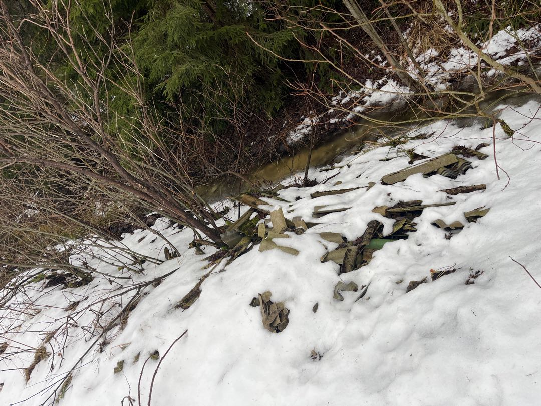 Mežmalā izmests šīferis un citi betona gabali