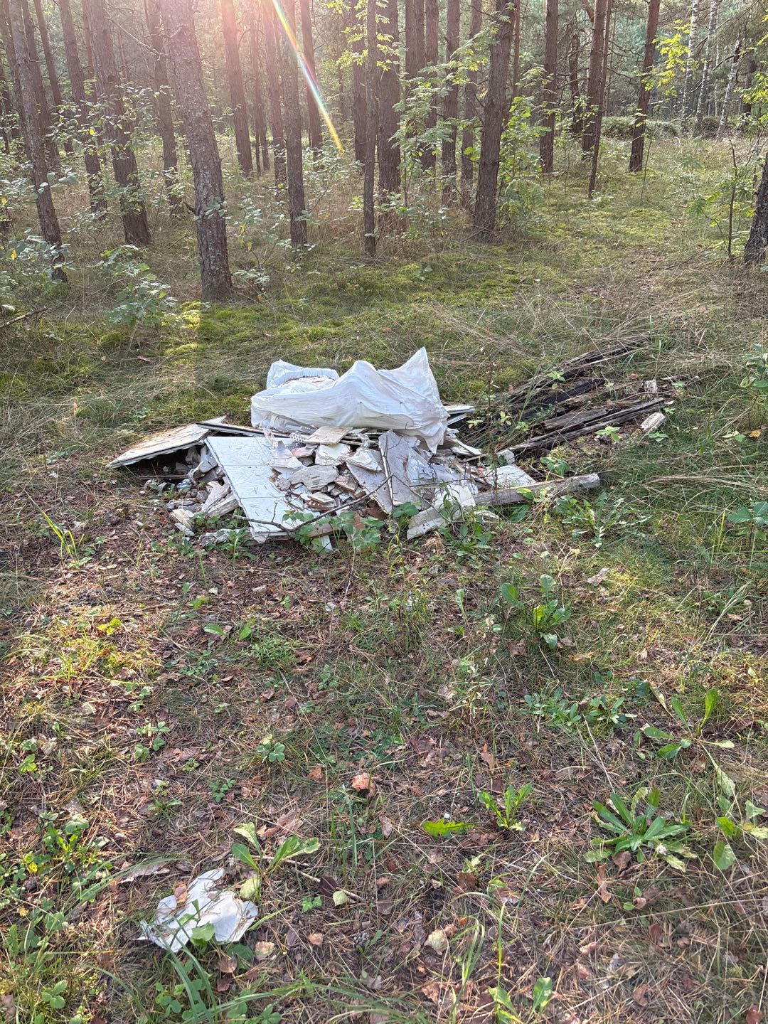 Mežā izmesti atkritumi no remontdarbiem vai celtniecības