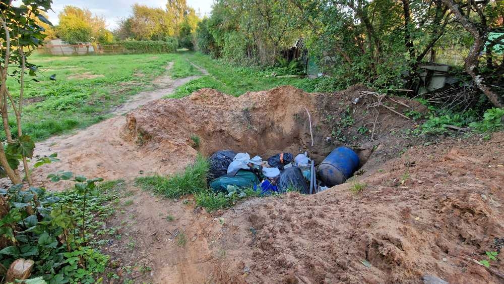 Sadzīves atkritumi un būvgruži. Izrakta bedre.