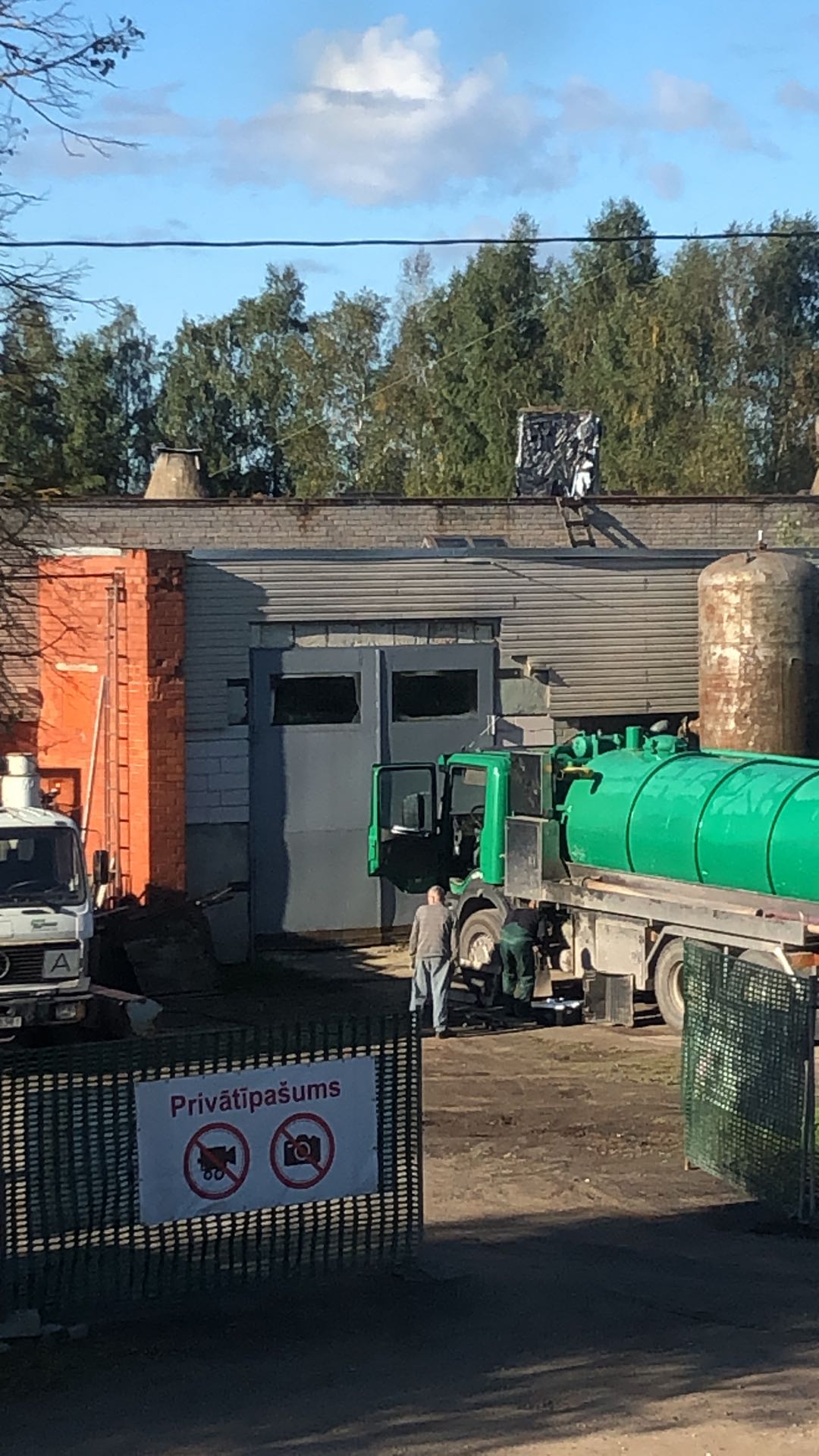 Asenizatoru tehnikas remonts mūsu dzīvojamās mājas tieša tuvumā.