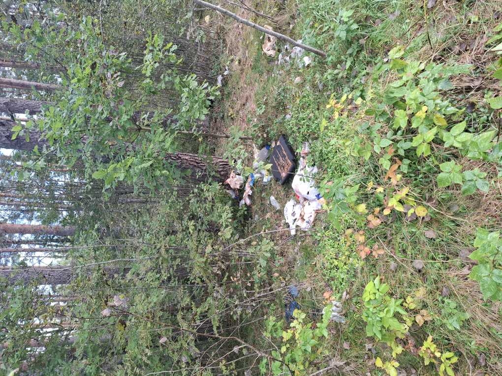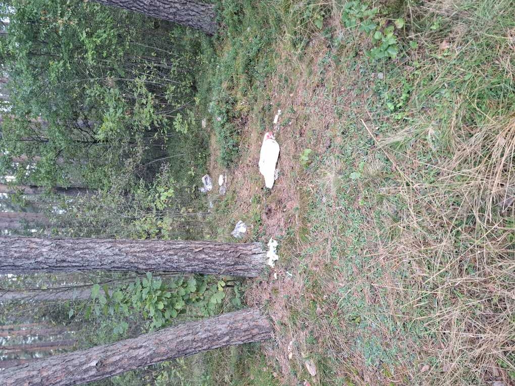 izmētāti sadzīves atkritumi, saplēsta stikli.
