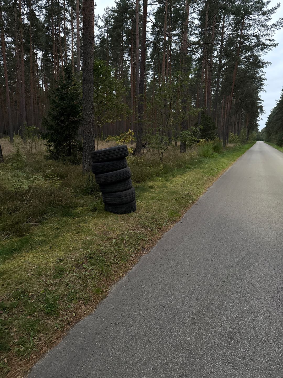 Kāds izgaza riepas mežā. Ezerkrasta iela, Sunīši.