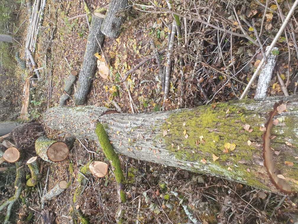 zāģēts ~ 170 g.v. ozols (ar vējā cietušu zaru ~