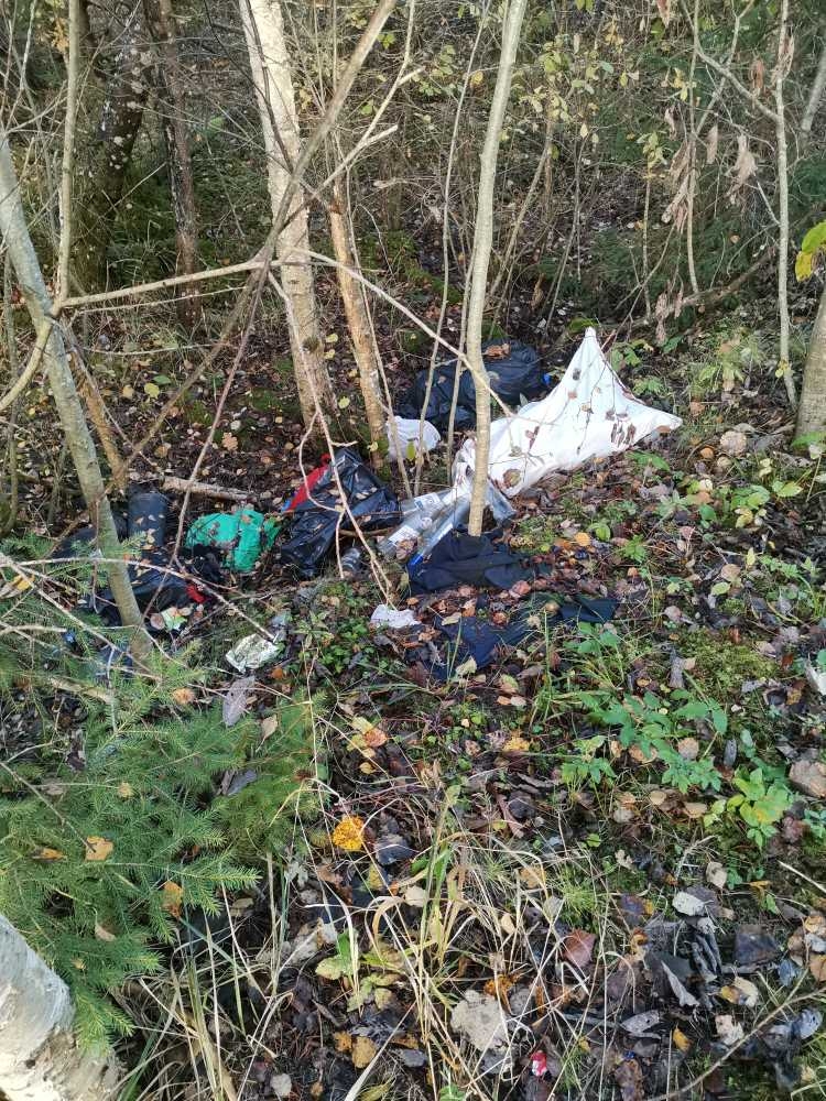Ceļa malā Saldus - Kuldīga izgāzti atkritumi, netālu no Dūres. Ceļš P108