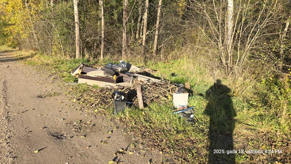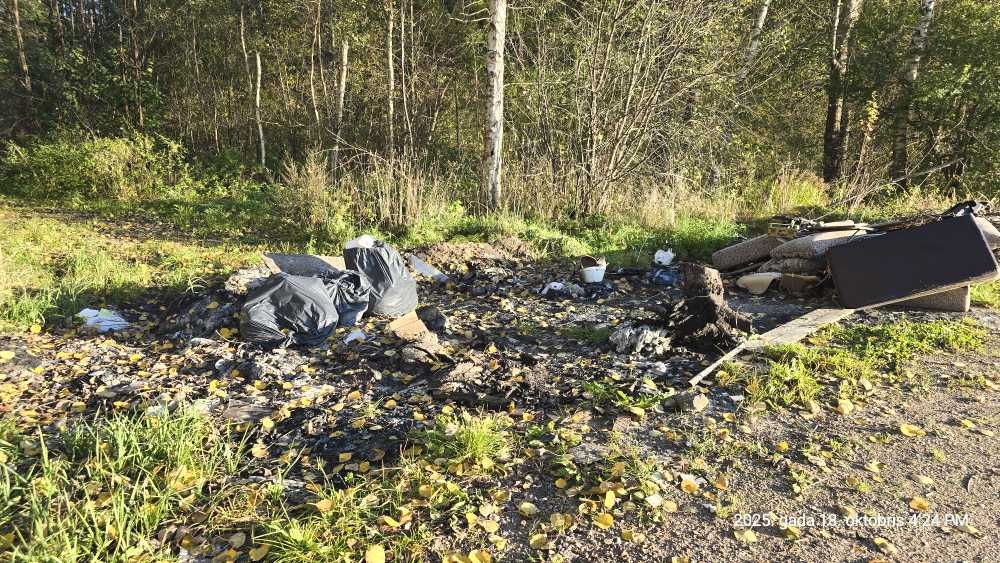 izmesti lūžņi, kaut kas polietilēna maisos, mēbeļu daļas, kaut kas jau iepriekš dedzināts