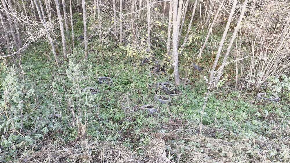 Izmestas kādas 25 vieglo auto riepas. Otrā pusē ceļam apmēram 100m Rīgas virzienā ir izmestas kšdas 5 gab.smago auto riepas. Par šo problēmu informēju jau trešo reizi 2 gadu laika. Jautājums,diemžēl, nerisinās un nerisinās....