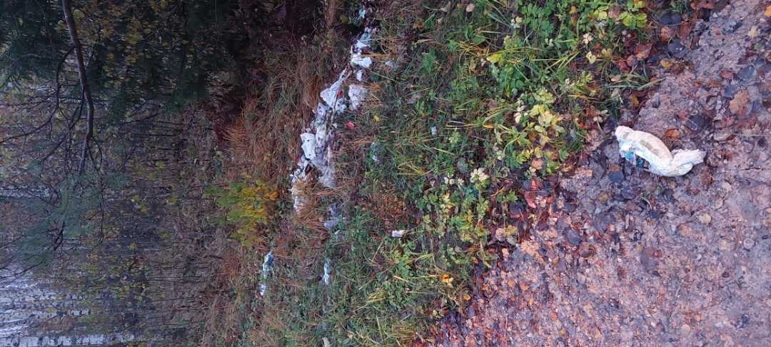 Ceļa malā izgāzti sadzīves atkritumi.