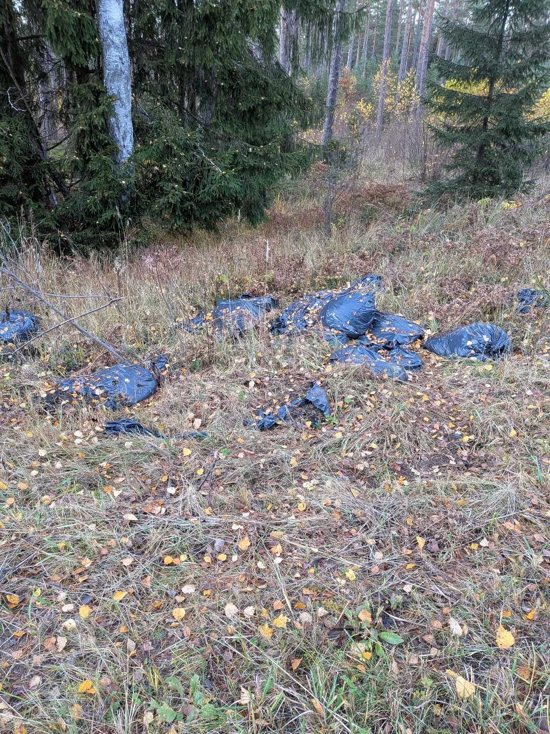 Izmesti atkritumu maisi ceļmalā.