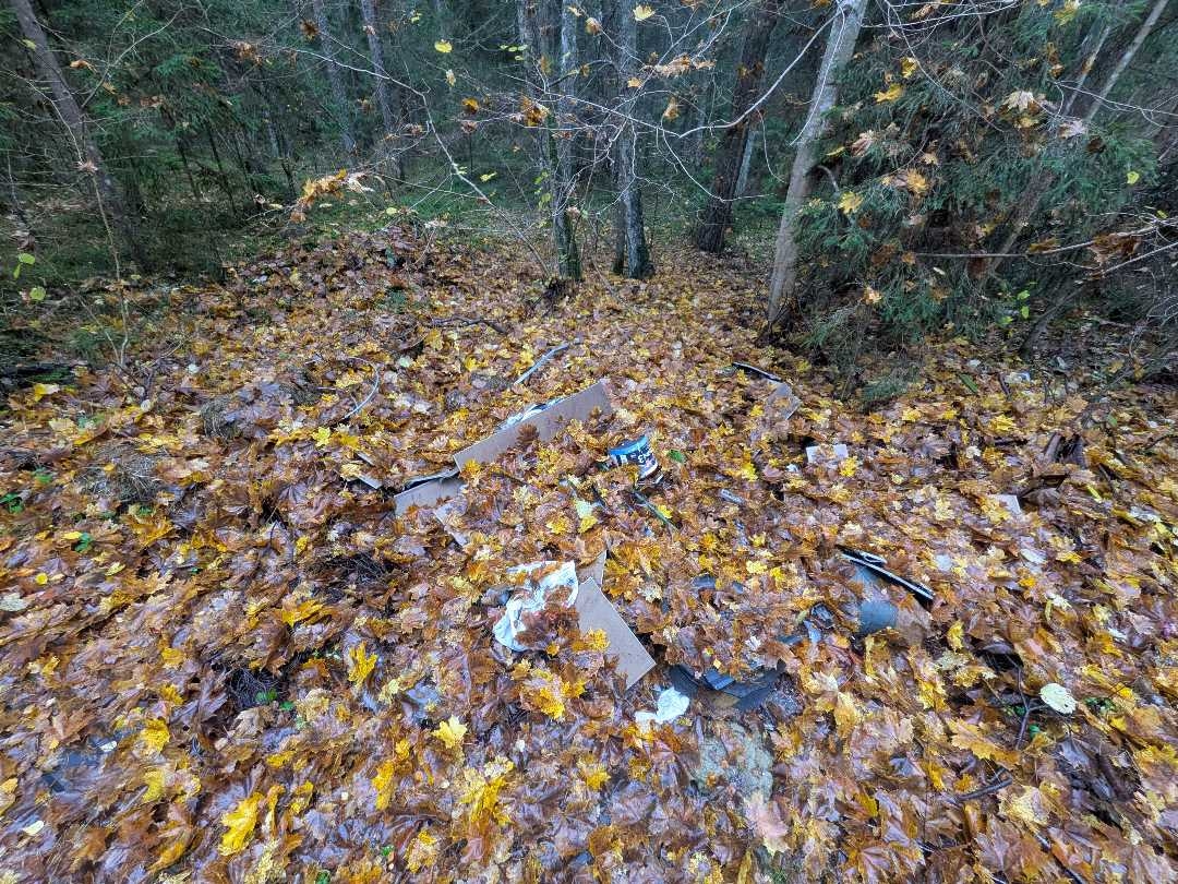 Izgāzti būvniecības atkritumi mežā (aptuveni 1m3). Ķemeru nacionālā parka teritorijā. Meža ceļš no otras šosejas puses, pretī Mazezera/Valguma ezera stāvvietai.100 m no ceļa.