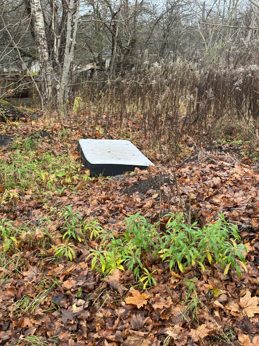 Izmestas gultas un matrači. Ziepniekkalns, Misas un Mālu ielas galā.