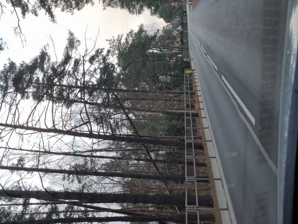 priede karājas virs braucamā ceļa Vecāķu prospekts