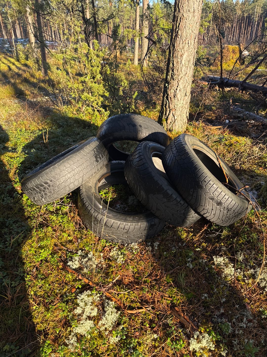 Mežā izmestas riepas