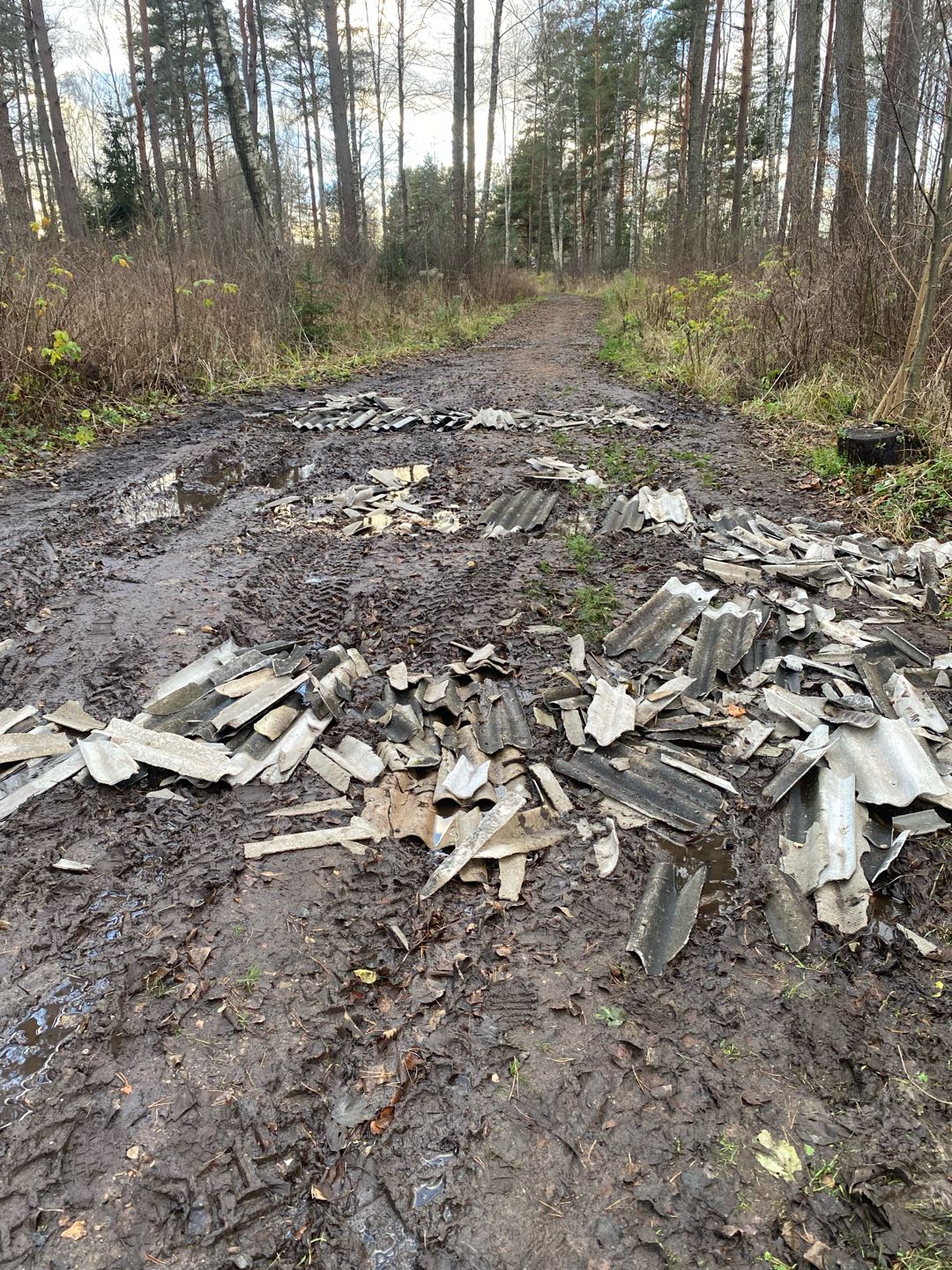 Saulkrasti, Zvejniekciems, Akmens ielas turpinājums (aiz Mārstaļu ielas). Uz ceļa izbērts šīferis (visticamāk no tuvējās mājas Vizbuļu ielā, kur tas ilgu laiku stāvēja pie sētas).