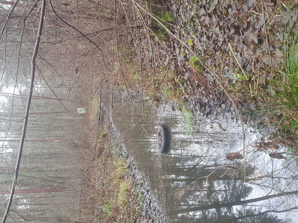 Paldies Jums par sniegto ziņojumu! Norādītajā vietā riepa no ūdens ir izvilkta un aizvesta.