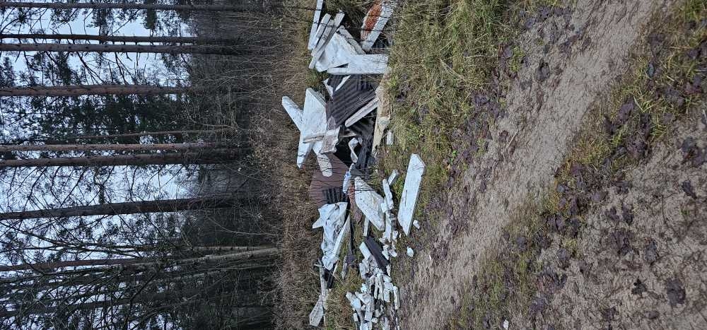 blakus ērti piebraucams ceļš. putuplasti uc celtniecības atkritumi