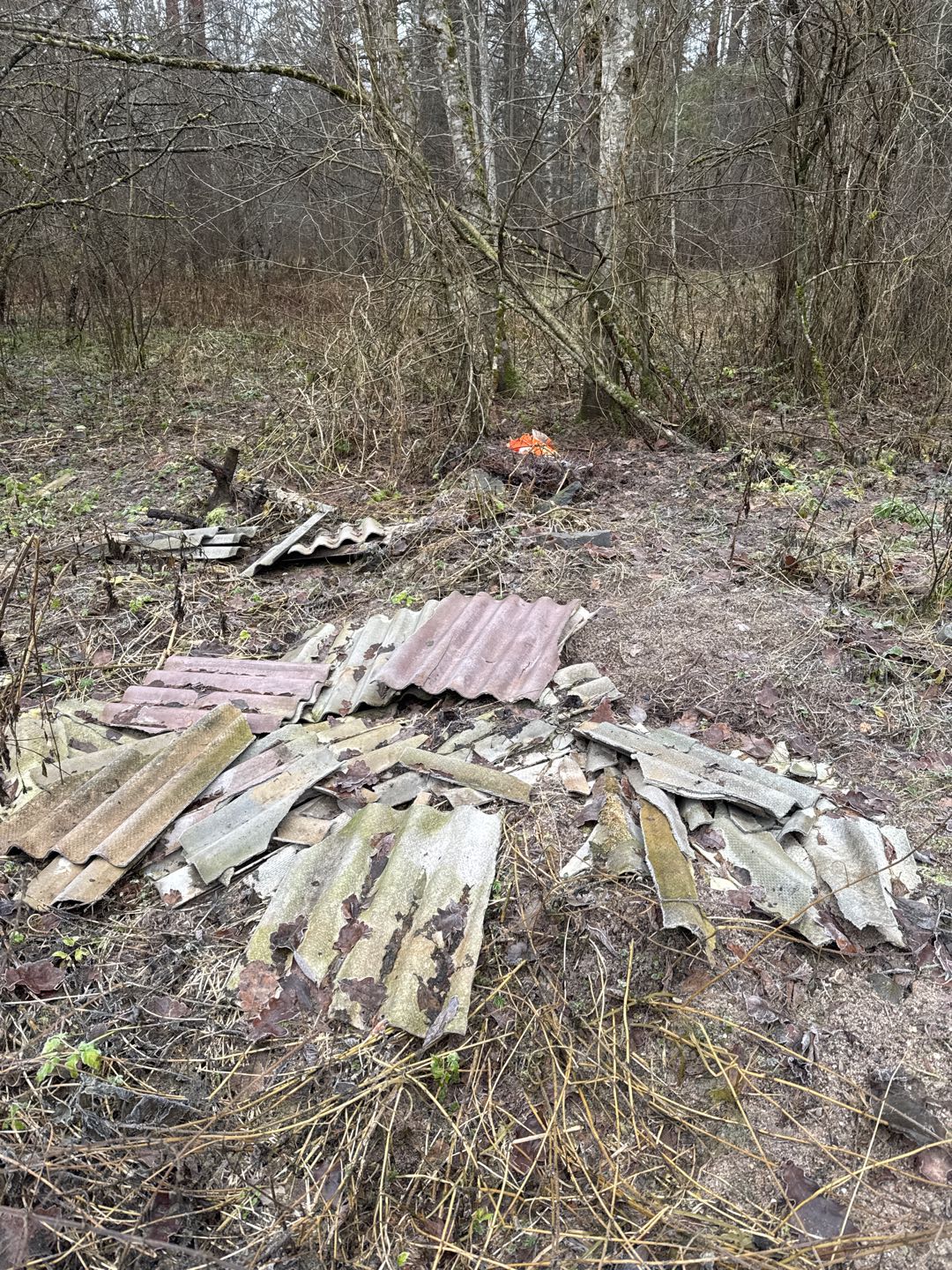 Atkritumi un šīferis mežā un pie ceļa