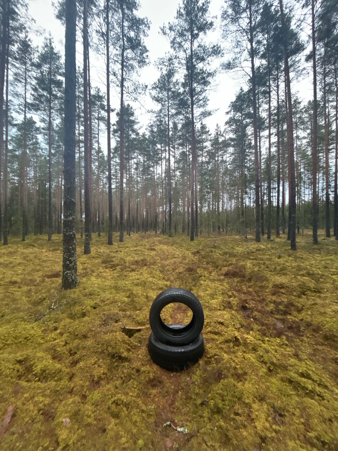 Staigājot mežā atradu izgāztas riepas, meža vidū (apruveni 1km iekšā mežā)