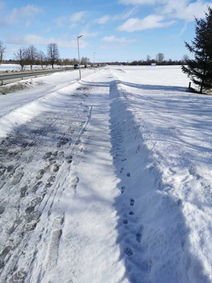 Gājēju un velosipēdu celiņš ir pilns ar sniegu un nav tīrīts