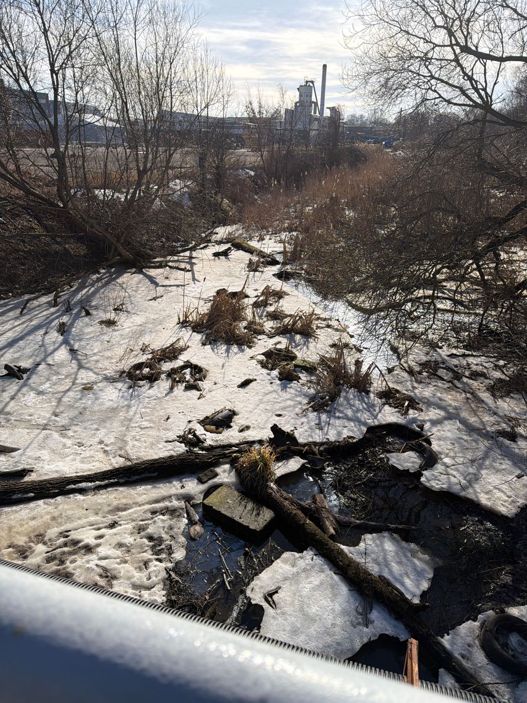 Pie Bieķensalas ielas, laikam Kīleveina grāvī, pilns ar atkritumiem, riepām. No otras puses (šī bilde ir no Buru ielas puses, bet no Bieķensalas ielas puses) redzams, ka iemesti vismaz 2 Maximas ratiņi iekšā.