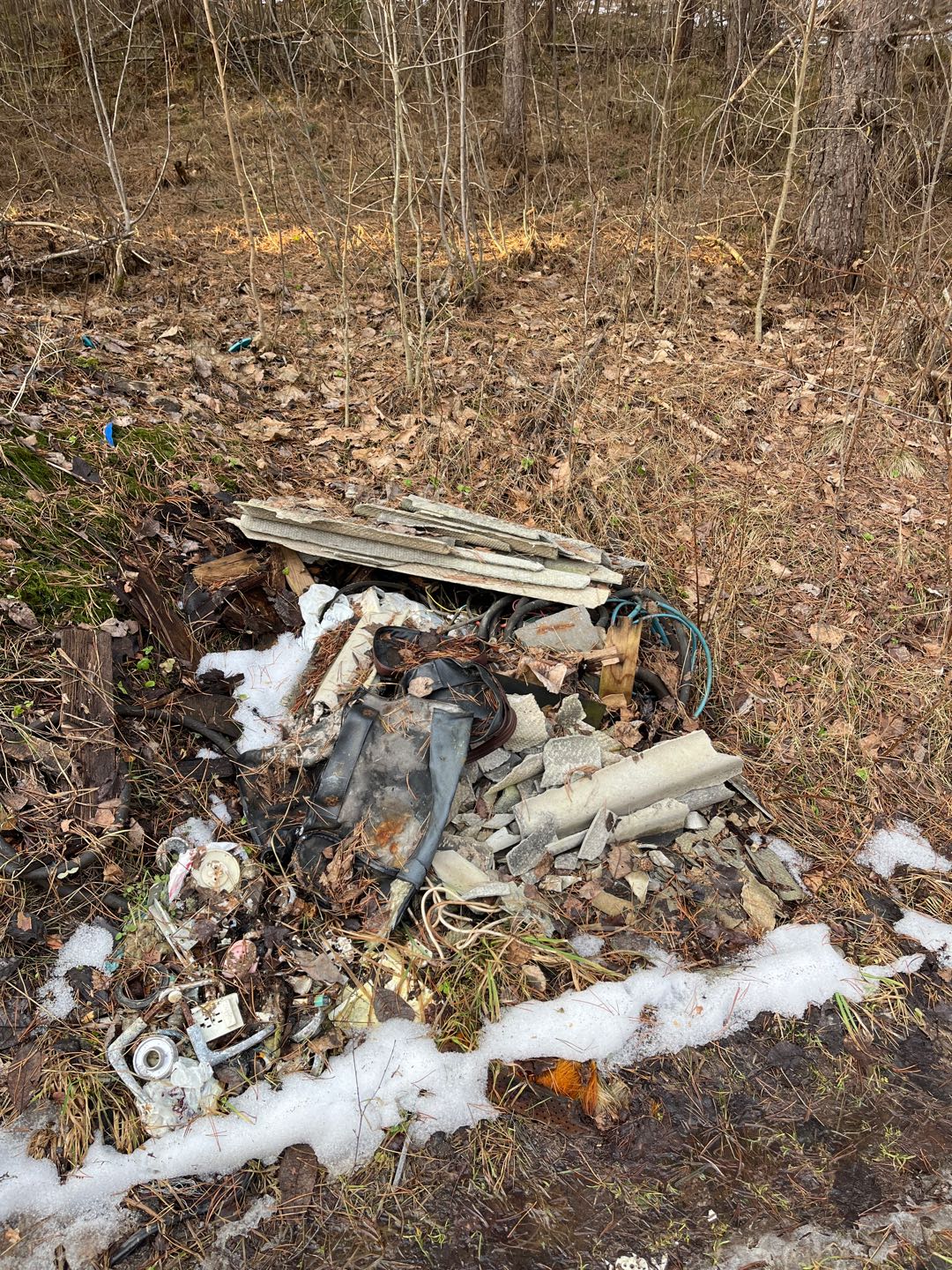 Mežā netālu no vietas kur pie Skiltenes robežas grants ceļš šķērso Drandu izmests šīferis un citi atkritumi. Pa celiņu uz priekšu ir vēl atkritumi