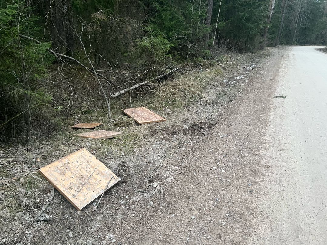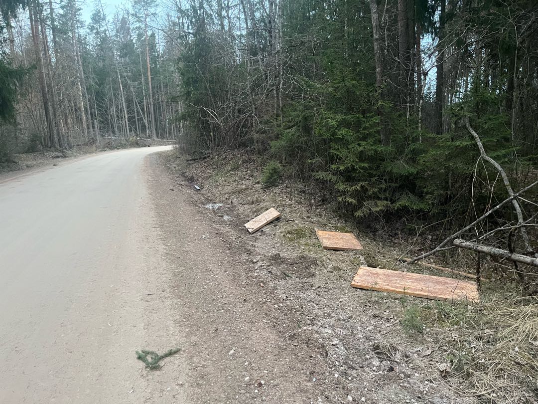 Mēbeļu detaļas ceļa malā.